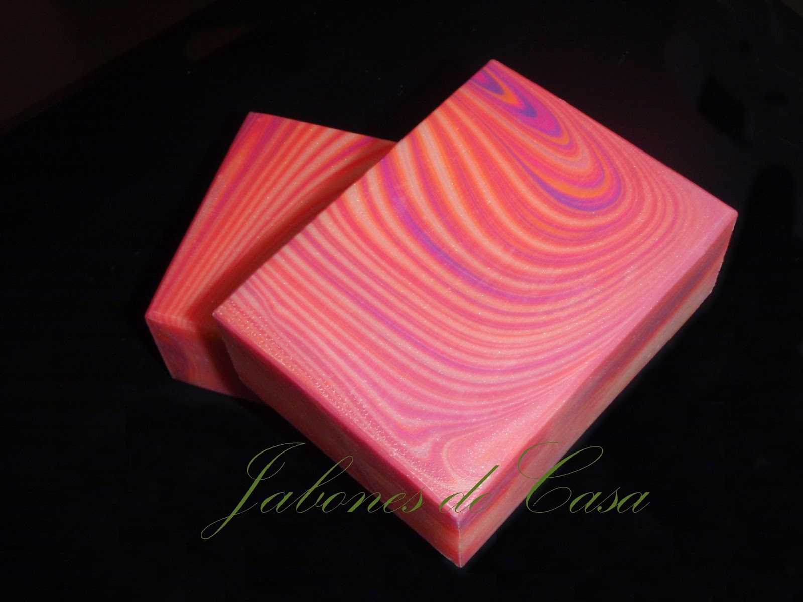 Hace mucho tiempo que no publico, por motivos personales (nada grave) he pasado un año sin hacer jabón; ha llegado el momento de retomar la afición y aquí estoy de nuevo, rodeada de boles y paletas. La primera tarea ha sido revisar todos los grupos de facebook, blogs y páginas en los que siempre me he movido, unos españoles, otros americanos, italianos, franceses, alemanes, etc.; también he releído mi propio blog, con una mirada tan crítica como la que he utilizado para los demás. Ni que decir tiene… que he encontrado cosas con las que estoy de acuerdo, y otras con las que no. Teorías que defienden “a capa y espada” un tipo de gelificación o la ausencia de la misma, la efectividad o el absurdo de un aditivo, o la generalización en el resultado de cualquier método de elaboración de jabón sin, probablemente… porque en caso contrario no sentarían cátedra de ese modo, haberse metido de lleno en él. Esta revisión me ha dejado más tareas pendientes de las que ya tenía, más pruebas a realizar, pero he pensado que lo mejor era comenzar por algo sencillo: probar unos colorantes. Tenía los colores flúor sin estrenar, he buscado en la carpeta de imágenes guardadas en busca de inspiración… y he encontrado esta foto, de ella ha surgido el jabón de hoy.